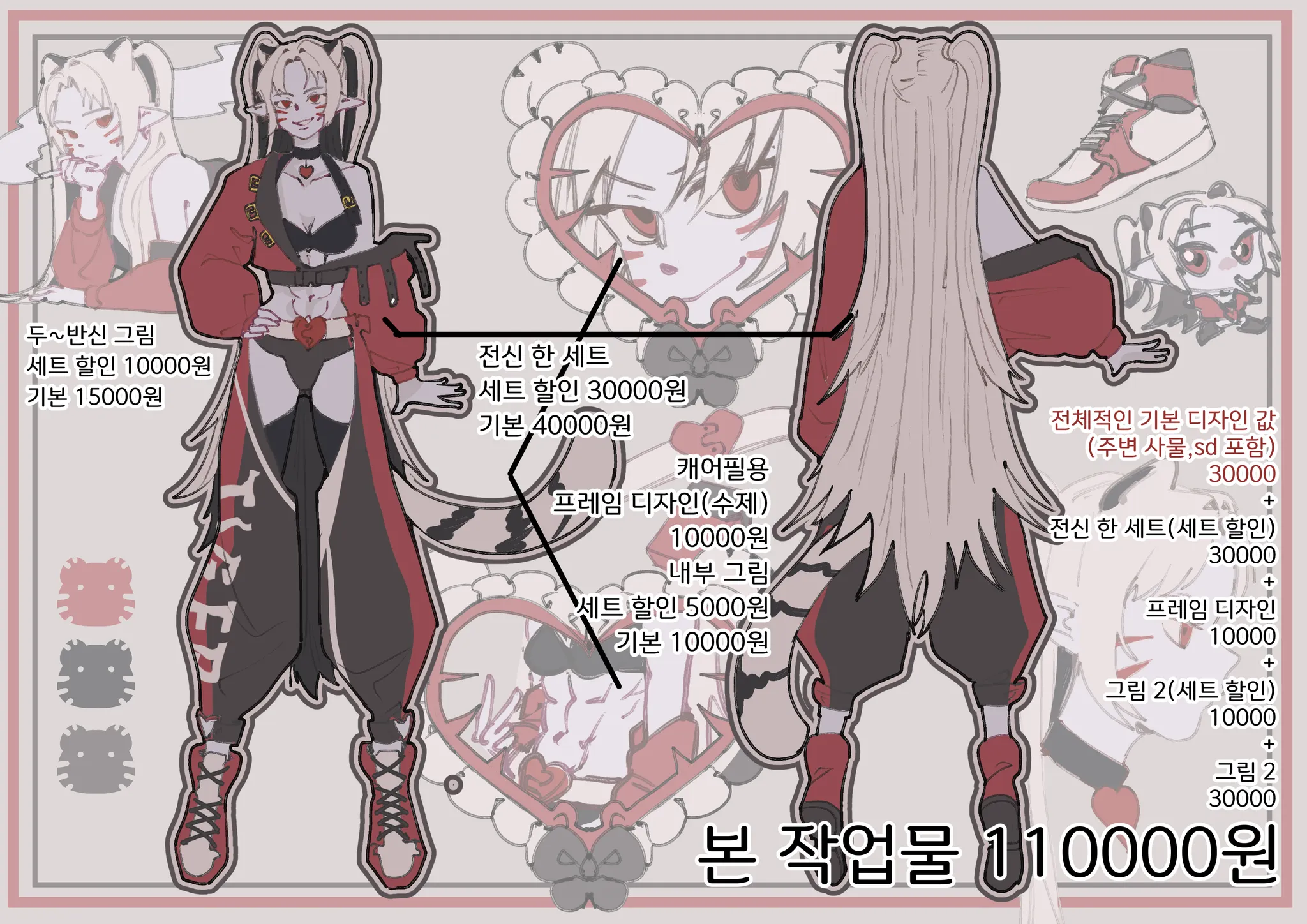 -러프 비용 10000원과 함께 전체적으로 신청 캐릭터와 어울릴만한 구상 디자인 러프를 제공 후